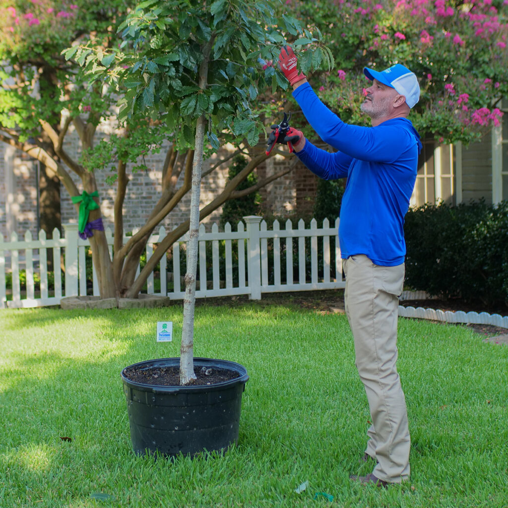 During the first year, your tree’s energy should be focused on root establishment—not on shaping its canopy. For this reason, pruning should be kept to a minimum. Only prune to address immediate concerns, such as: