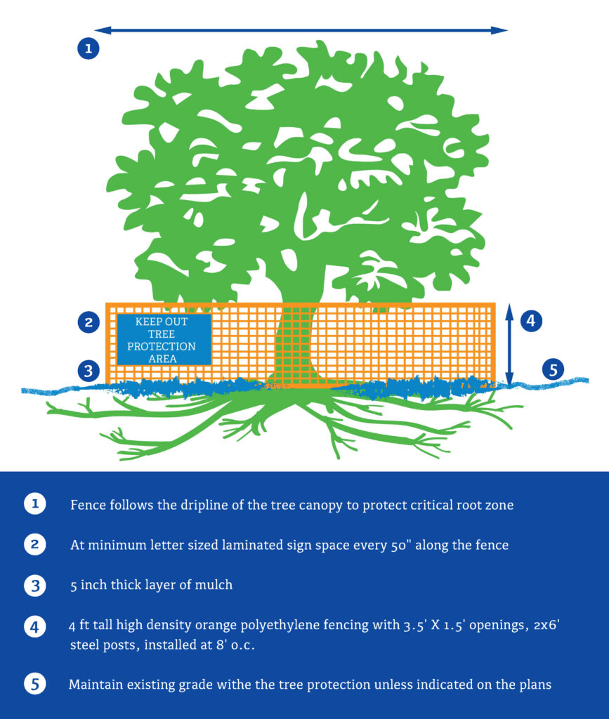 - Develop a comprehensive Tree Preservation Plan including pruning, fertilization, mulching, irrigation, and pest management